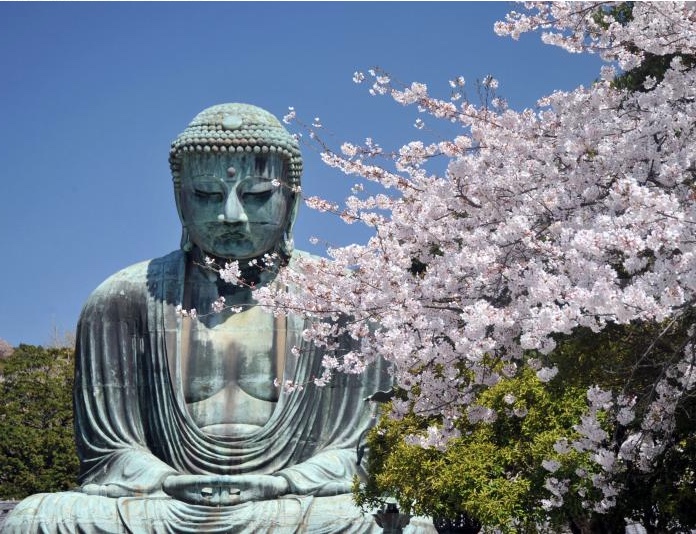 Archeology shows that people have been living there for thousands of years. Some claim that it was the fourth largest city in the world in 1250 AD. To this day Kamakura has many beautiful Buddhist temples and Shinto shrines. A large outdoor statue of Buddha, the Kamakura Daibutsu was built around 1252. It used to be inside a temple, but it was destroyed after a storm. The temple was rebuilt several times after storms and one tsunami, but it looks like people gave up eventually!