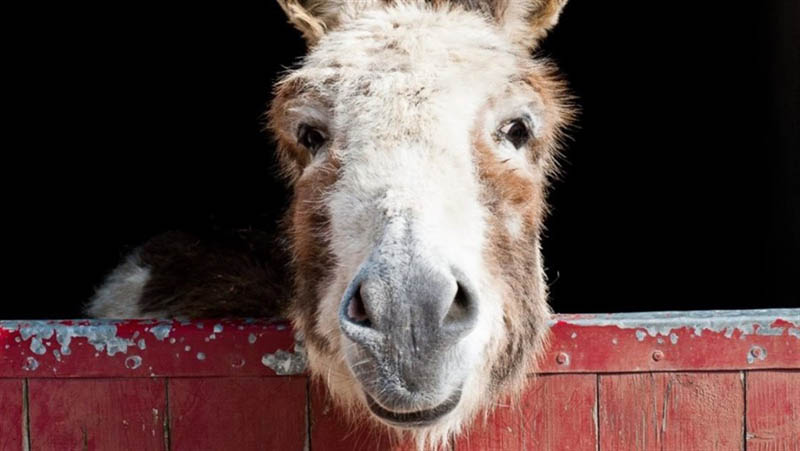 So what do donkeys do? They gallop, they eat, they sleep, sometimes they just stand around, occasionally they’ll kick. Now and then one will decide he isn’t going anywhere and stubbornly dig in his hooves. (“Who enjoys going to the dentist?” asks narrator Willem Dafoe.)
