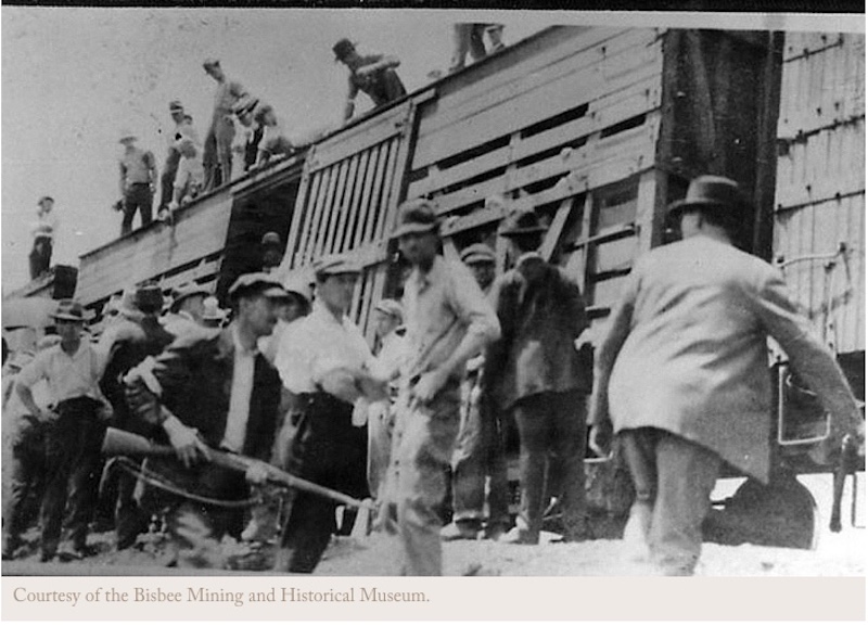 “In July 2017, the town of Bisbee, Arizona marked a sad centennial: in 1917, the town was the site of the violent deportation of more than 1,000 striking copper miners, who were abandoned in the desert by an armed posse hired by the mining company and led by the sheriff.