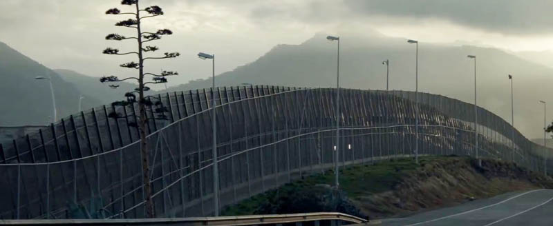 The film’s narrator, Nicola Creighton, reads excerpts from Kafka, in the original German, while we look at walls and very tall fences marking borders in Europe and North Africa. Those North African scenes were shot in Melilla, a small chunk of Morocco that Spain has held on to since 1497.